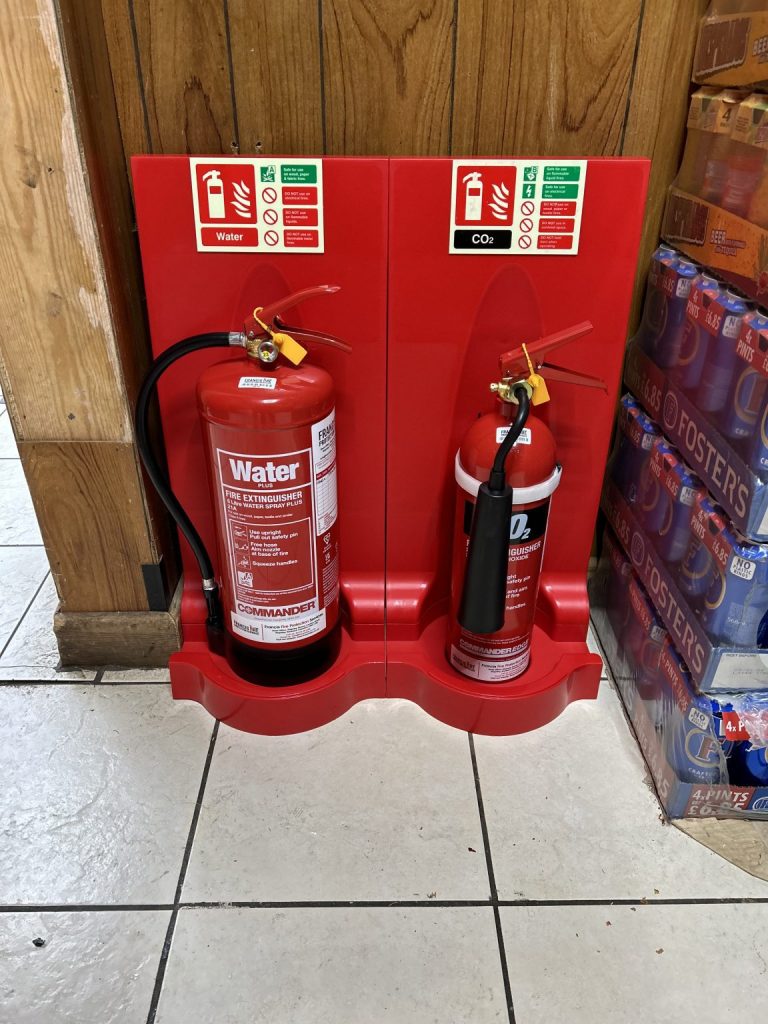 Our fixed fee quotation was accepted by the RP, whilst in-attendance, our engineer then proceeded to install Kitemarked EN3/UKCA portable fire extinguisher(s) fire points throughout, consisting of 6-Litre Water Plus (21A) and 2KG CO2 Carbon Dioxide (34B), finished with photoluminescent landscape ID signs, positioned on modular floor stands, including CO2 retaining Velcro straps and extinguisher missing discs.