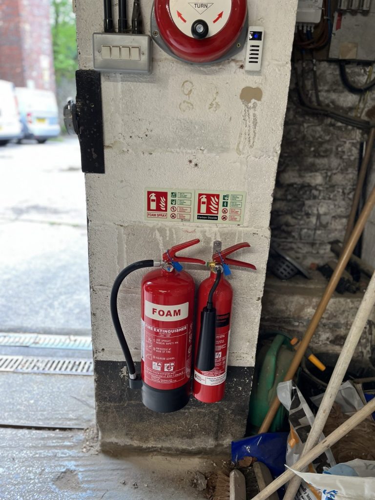 From this, our engineer recommended dual-extinguisher fire points throughout, which consisted of 6-Litre Foam and 2KG CO2 (Carbon Dioxide) extinguishers, covering the said risks present, along with the foam extinguishers being available to aid escape too. Our engineer then proceeded to supply, commission, and install the said extinguishers at specific fire points throughout, these were finished with photoluminescent ID signs, with a certificate of compliance being issued to the customer.