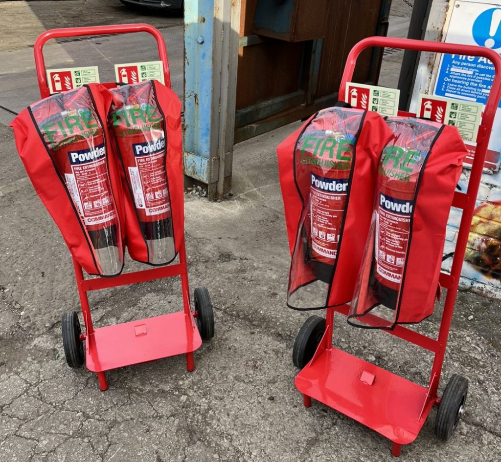 After discussing the portable fire extinguisher assessment, with the ‘Responsible Person’, it was recommended and agreed that two mobile fire extinguisher trolleys consisting of 2 x 6KG ABC Dry Powder BSI Kitemarked fire extinguishers were to be supplied, commissioned, installed with photoluminescent ID signs, PVC protective covers, and certified, providing suitable and sufficient first-aid fire-fighting cover for the identified fire risks (Class A, B, & C), including running fuel fire risk (Diesel & Petrol) present throughout the external yard area.